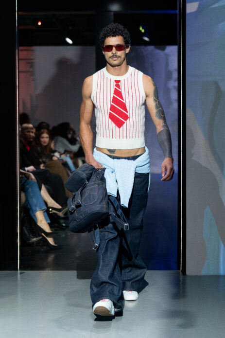 Finałowy Brit Pop to suspens na który warto było czekać. Przyniósł czystą energię i wyrazisty charakter. Inspiracje londyńską sceną lat 90. zostały przefiltrowane przez współczesną estetykę – skórzane kurtki, kratki, dopasowane sylwetki i mocne kontrasty kolorystyczne tworzyły mocne stylizacje. To była najbardziej bezkompromisowa część pokazu – przypomnienie, że moda wciąż może być manifestem, formą ekspresji i świadomym wyjściem poza schemat.