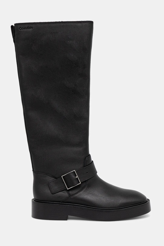Calvin Klein kozaki skórzane CONCAVE WELT UKT BIKER PB damskie kolor czarny na płaskim obcasie YW0YW01972