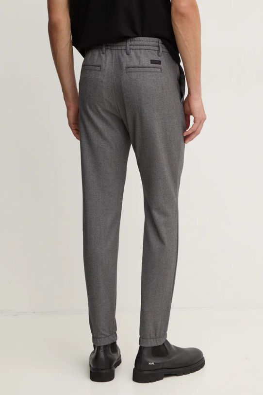 - Nogawki wykończone elastycznym, wąskim ściągaczem.