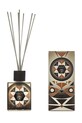 - Produkt w szklanym pojemniku nadającym się do recyklingu z dołączonymi pręcikami rattanowymi.