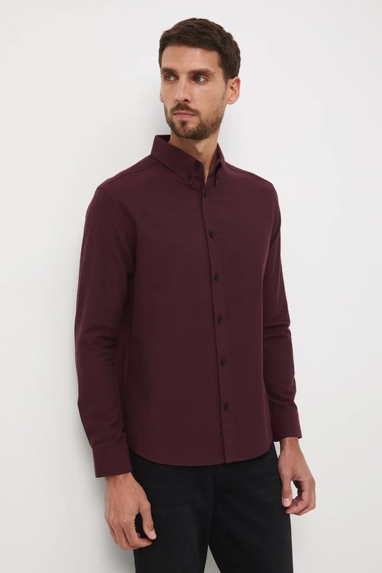 Calvin Klein koszula męska kolor bordowy slim z kołnierzykiem klasycznym LV019EU037