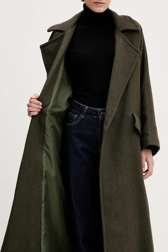 Płaszcz z kolekcji Sandro Ferrone. Przejściowy model wykonany z gładkiej tkaniny. Wełna dzięki wysokim właściwościom termoregulacyjnym pomaga utrzymać ciepło, gdy jest zimno i chłodzi, gdy jest ciepło.