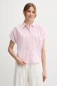 United Colors of Benetton koszula z domieszką lnu damska kolor różowy relaxed z kołnierzykiem klasycznym 58I5DQ08M