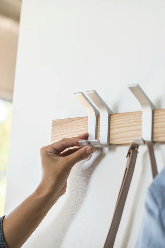 - Wieszak z listwą oraz haczykami, które można dowolnie na niej przesuwać.
